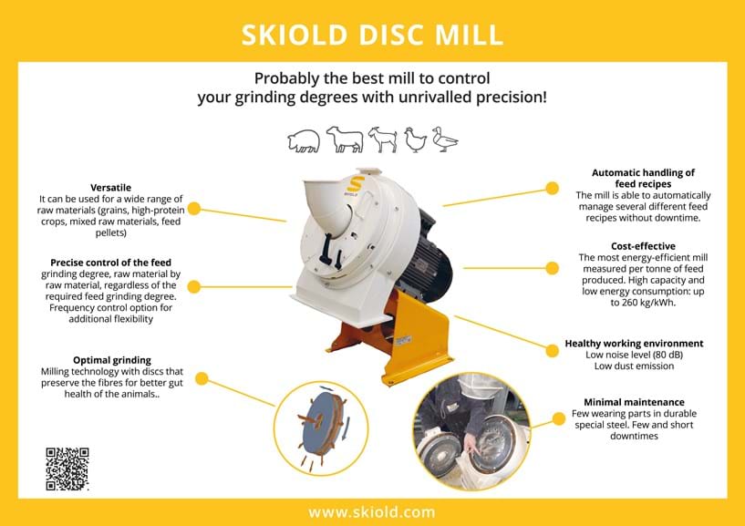 The SKIOLD Disc mills are the ultimate solution for poultry and pig farms looking to optimize their feed production! With award-winning technology and thousands of mills in operation worldwide, SKIOLD is a trusted name in the industry.