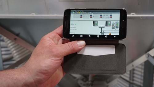 - "There is the monitoring and I have my wheat silos. Let's say I want to fill my silo with wheat. I switch here to manual and it turns green. We click on to "fill silo" and it starts automatically. If we want to stop, we click again and it stops."