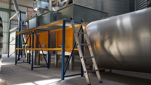 Nicolas' colleague was surprised by the cleanliness of the factory, "frankly it's clean.." Since commissioning, the farmer has swept his feed factory 3 times: Especially at commissioning and the week before our visit. "When you get dirty it's when you come in with the tractor and it's raining."